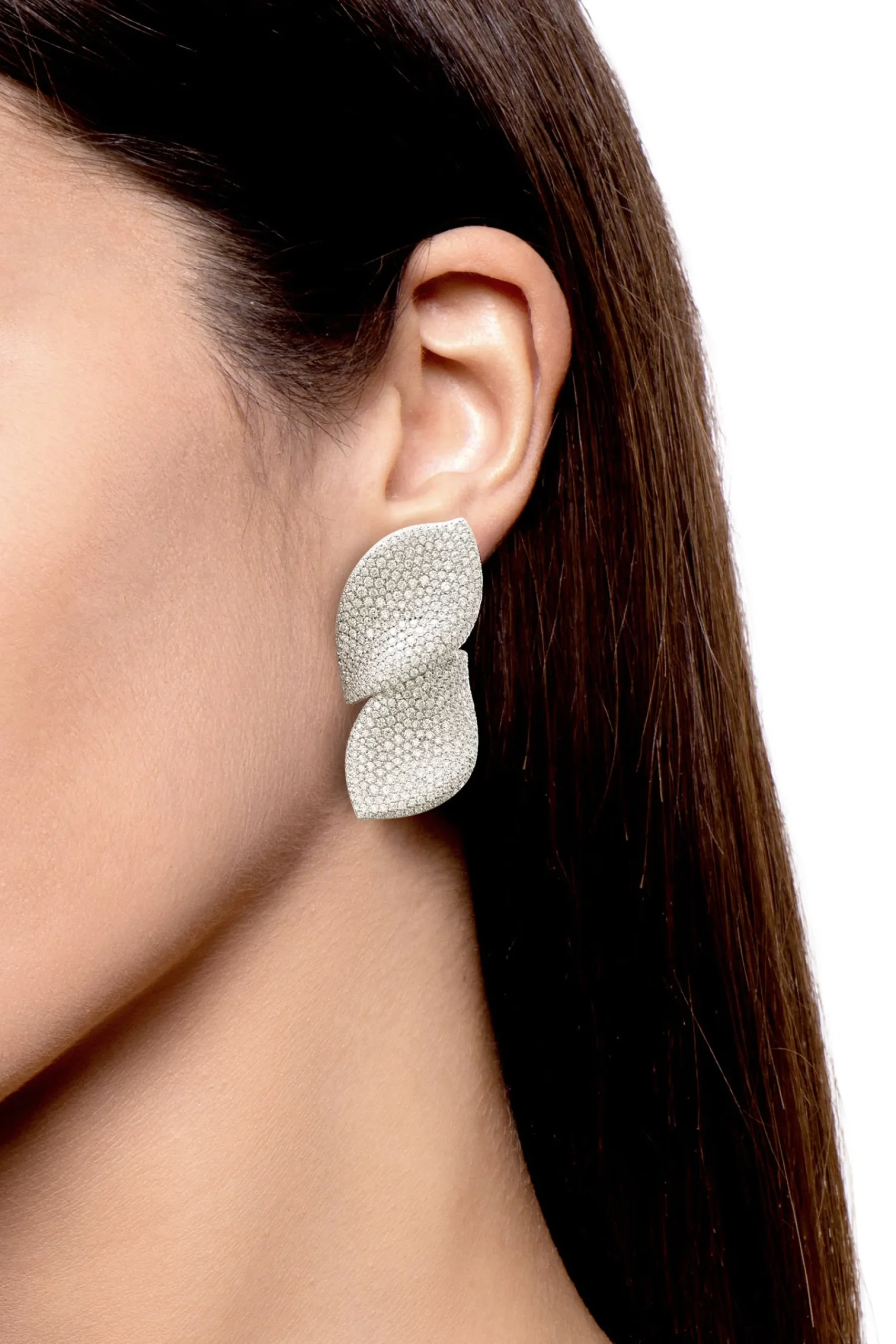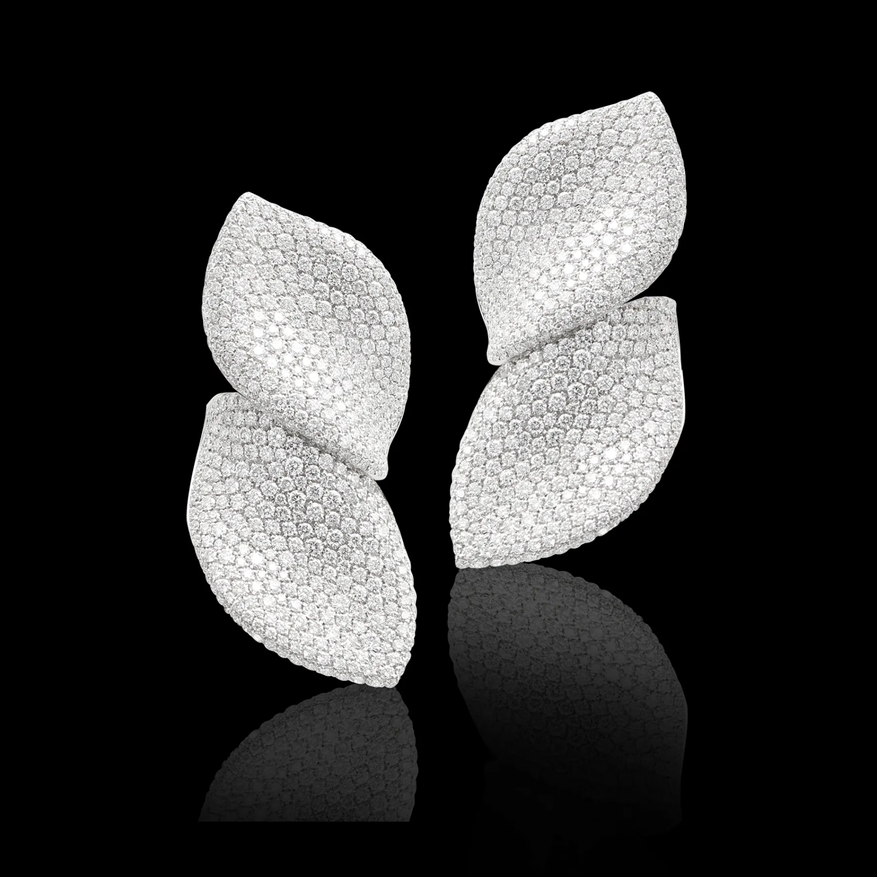 Artistic work on the pavé enables the light of the diamonds to emanate beyond the edges of the jewel, giving the form infinite movement.