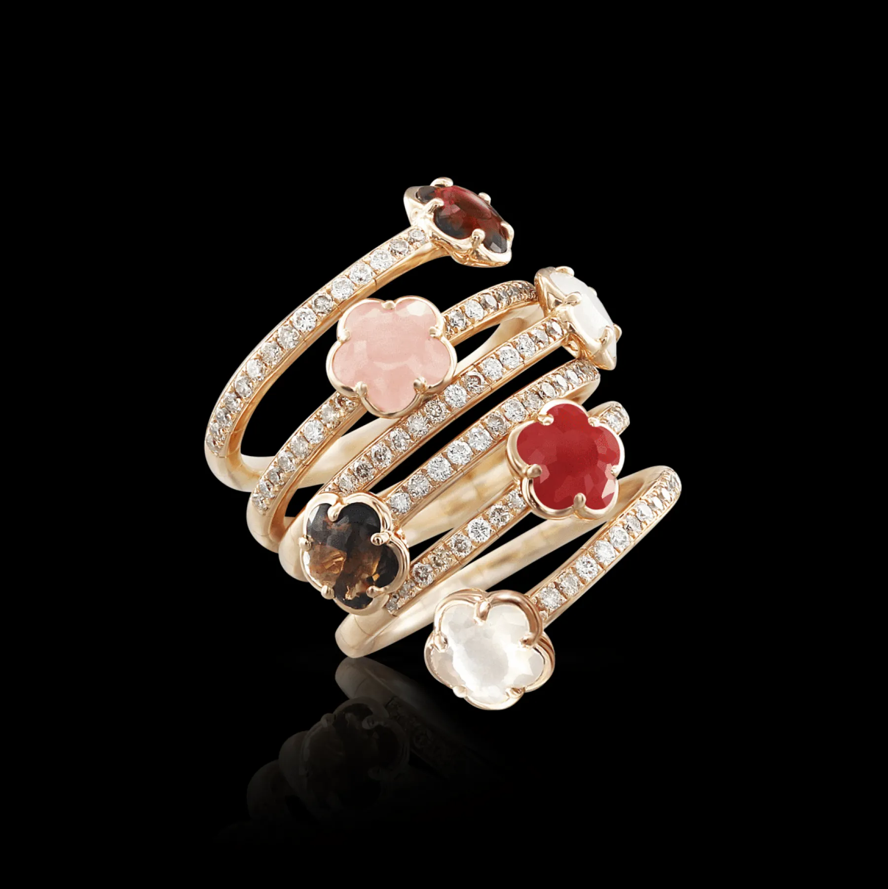 The flexibility and wearability in this collection are obtained thanks to a titanium spring inserted within the structure. It is called memory form, meaning the inner soul of the jewel never loses its shape.