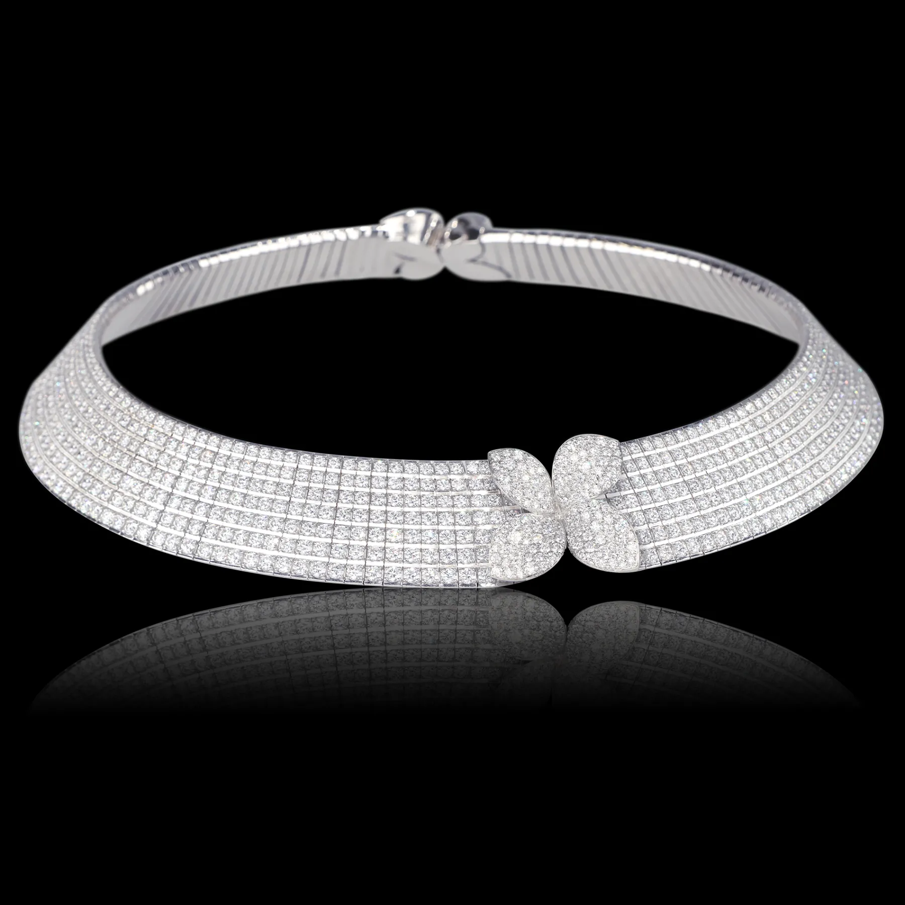 The "riviera," a stream of diamonds in the jewelry's shape, symbolically resembles a natural element like a river that freely traces its vital path. There is a profound fascination in which light flows naturally, tracing a path, metaphorically that of life, where you can get lost only to find yourself even better than before.