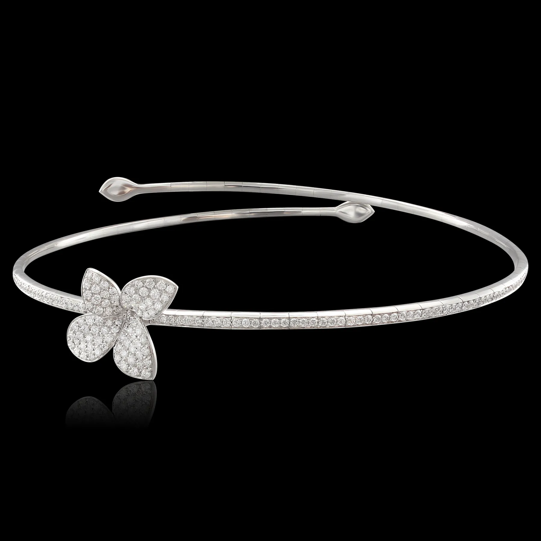 The poetry of rose gold goes through the light of the diamonds in a dance of flowers while an aura of white gold appears in the purity of its leaves. A perfume of love and wonder unites flowers and places, in a path of the heart into the most secret gardens.