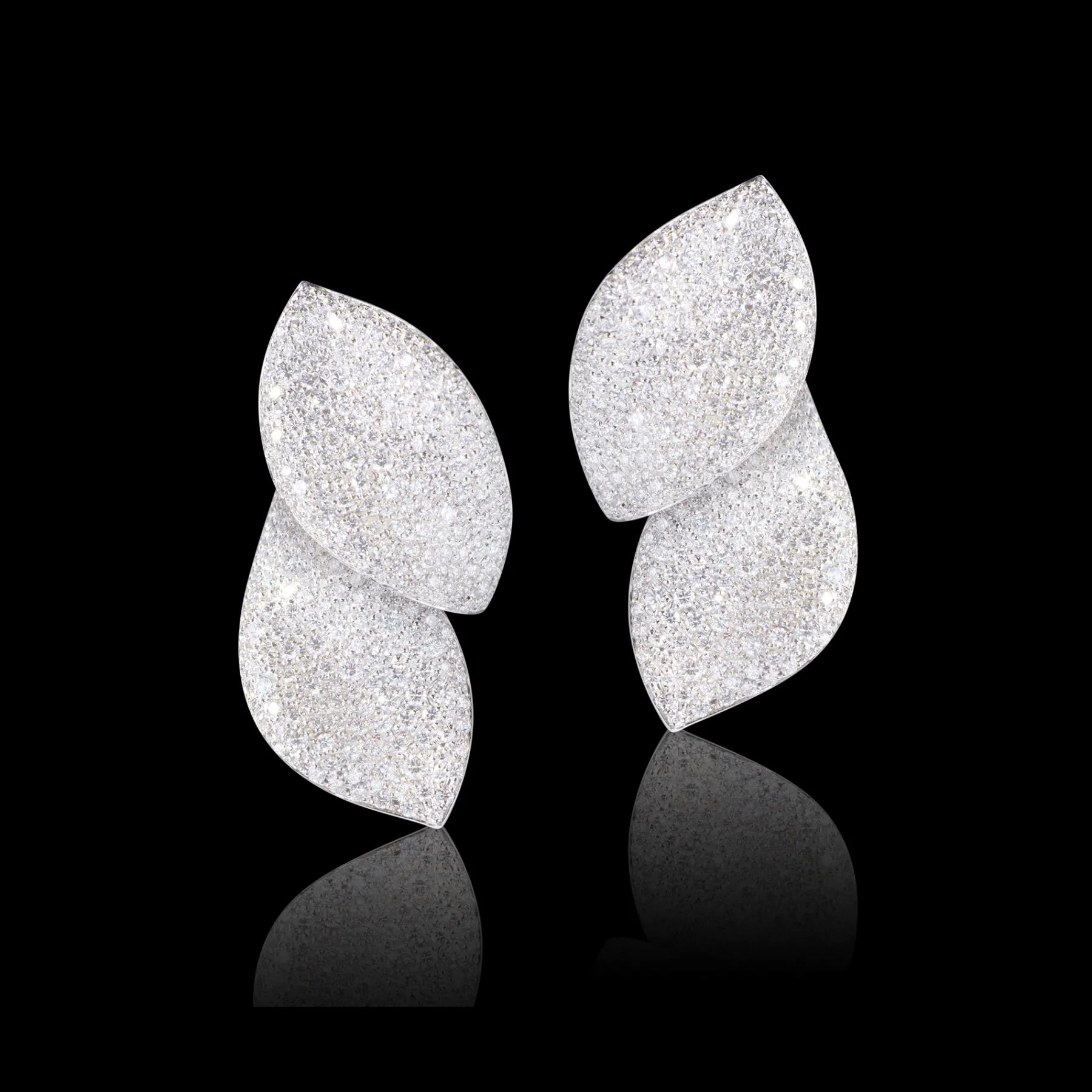 Artistic work on the pavé enables the light of the diamonds to emanate beyond the edges of the jewel, giving the form infinite movement.