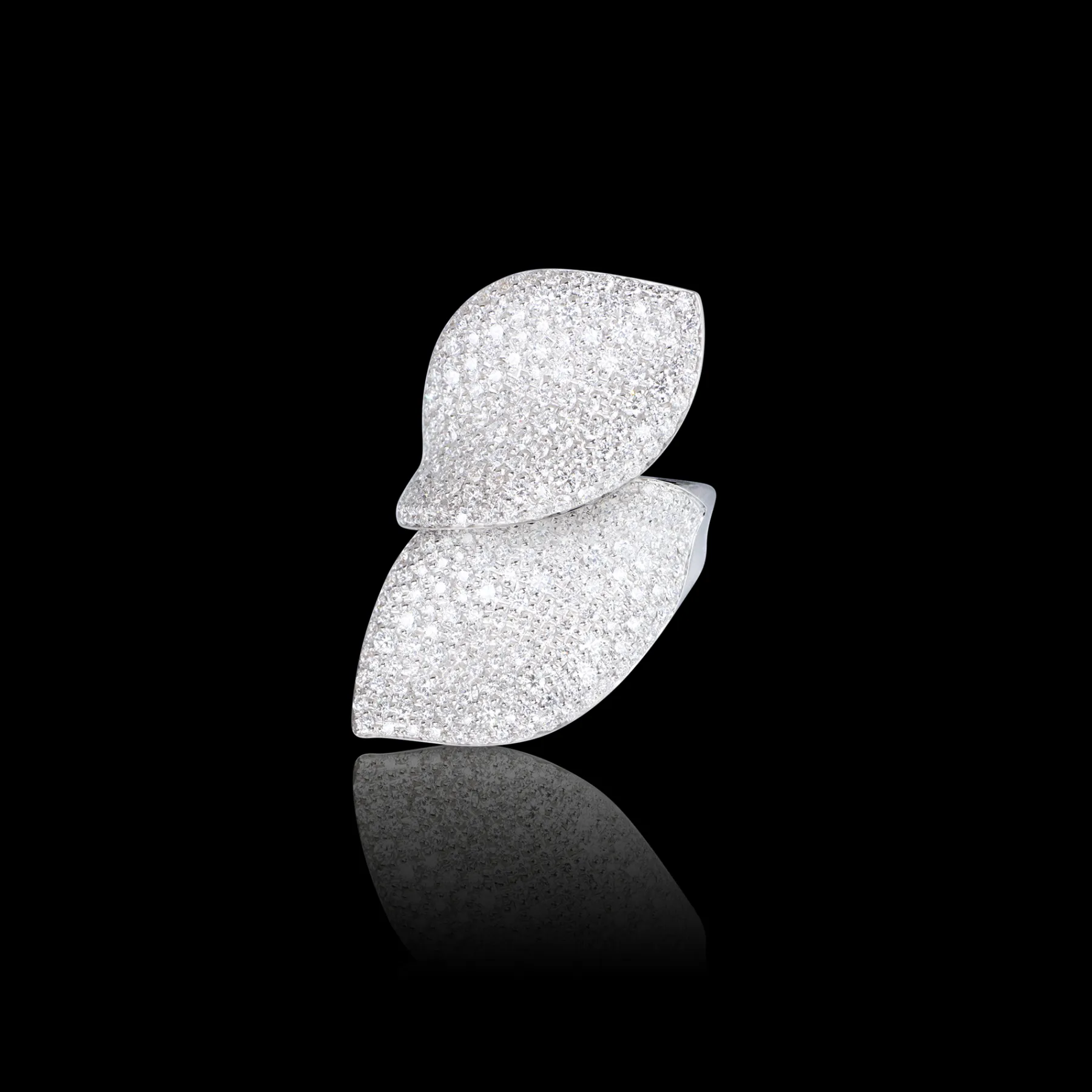 Artistic work on the pavé enables the light of the diamonds to emanate beyond the edges of the jewel, giving the form infinite movement.