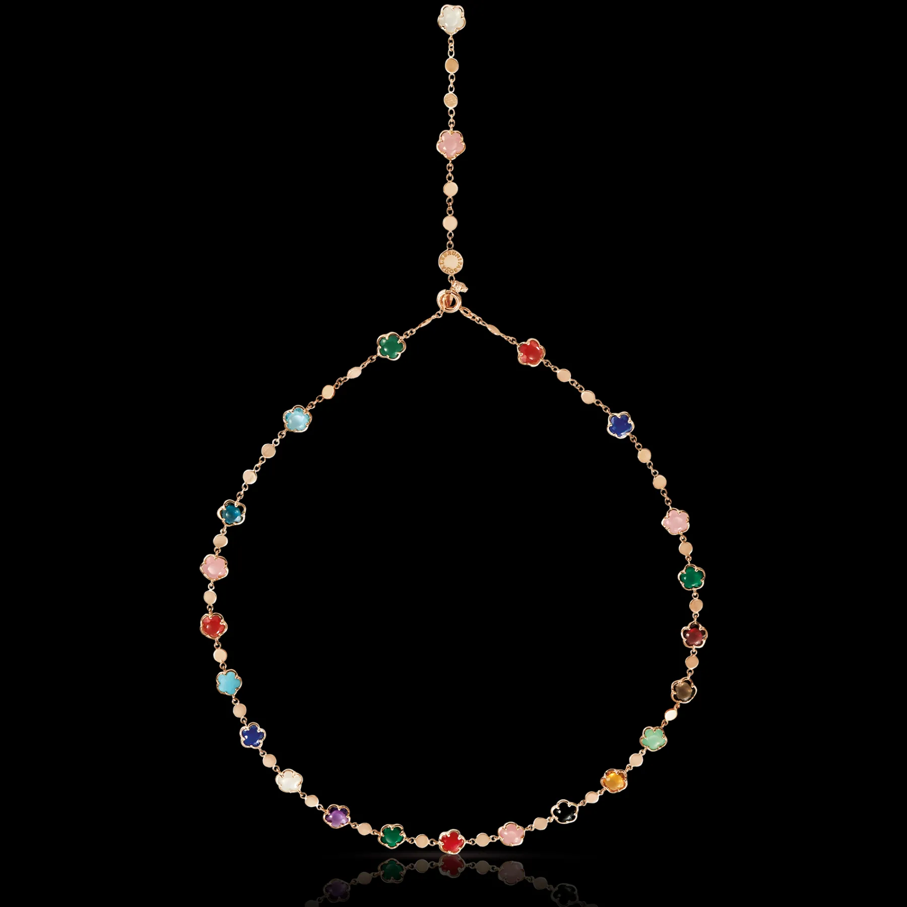 Green Agate, Red Carnelian, Onyx, White Moonstone, Pink Chalcedony, Citrine, Amethyst, London Blue Topaz, Smoky Quartz, Blue Topaz, Lapis Lazuli, Chrysoprase, Red Garnet, Turquoise and Diamonds. Flowers Size 5 mm