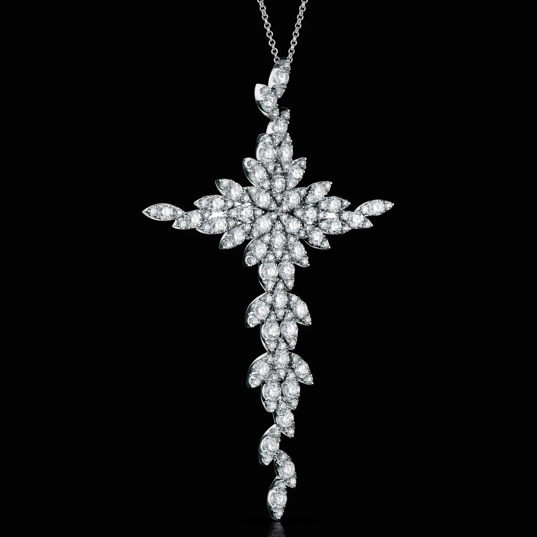 The 30 year-old Italian masterly craftsmanship takes shape in this magnificent collection inspired by the movement of flowers and leaves, traditional symbols of the Maison. A light dance of petals that seem to be gentle and winding on woman’s body, lighting her up with sensual and romantic glitters of precious stones and diamonds.