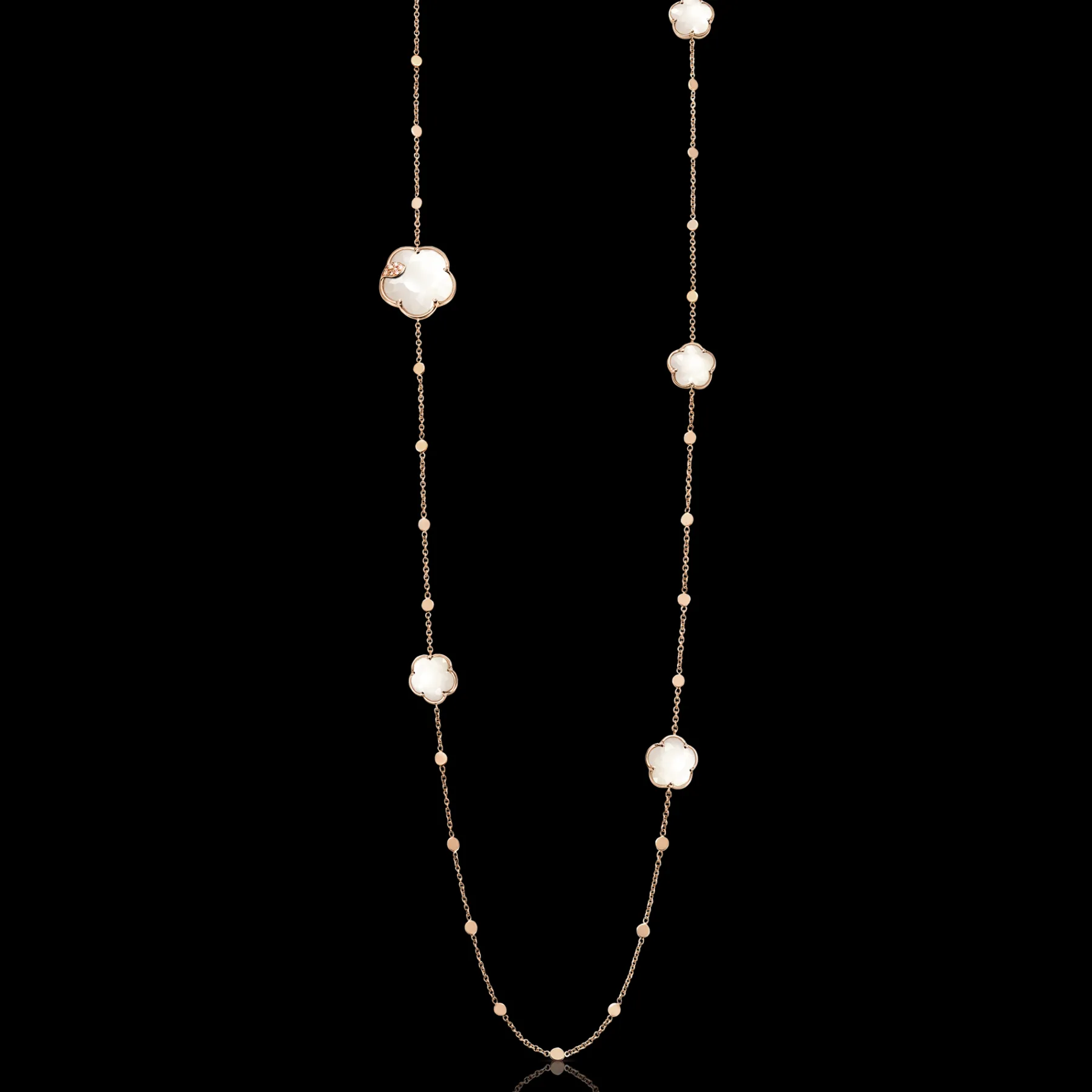 Ton Joli maintains the delicate faceting of the taglio Bon Ton, an exclusive Pasquale Bruni patented cut. The collection reinterprets the five-petals iconic flower of the Maison in new sophisticated proportions. Gems blend into a rose gold flower, wrapped in a leaf of white and champagne diamonds.
